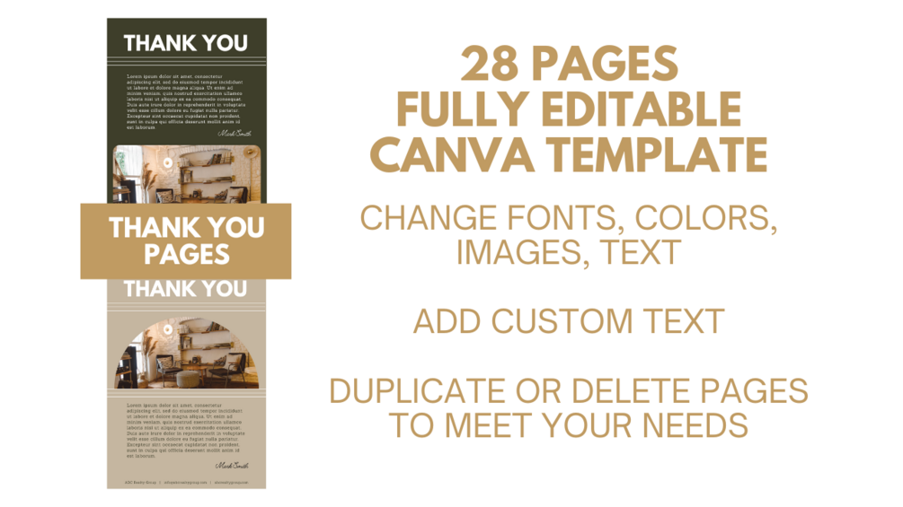 - Update the Welcome and Thank You pages with your realtor information, as well as the footer of each page.