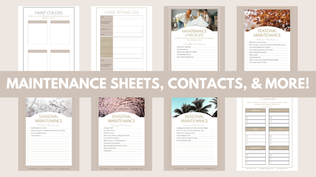 - Maintenance checklist and 4 seasonal maintenance checklists with suggestions and space to add your own